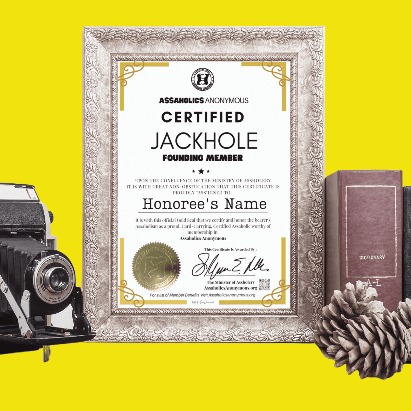 Digital Certified Asshole Membership to Assaholics Anonymous
